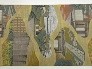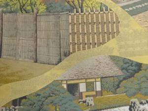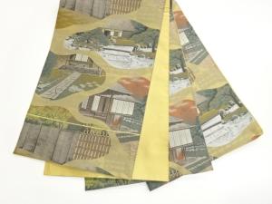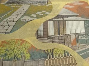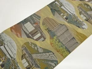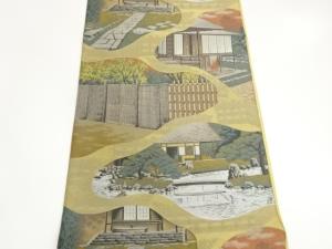 萬葉製 民家・庭園風景模様織出し全通袋帯