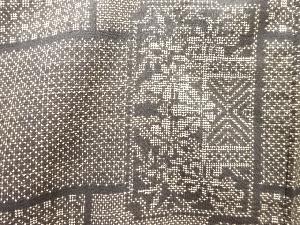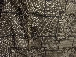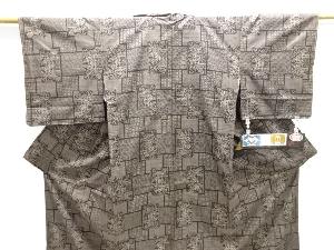 未使用品 枡に草花模様織り出し本場泥大島紬着物(5マルキ)