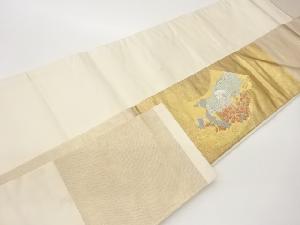 高島織物製 青銅箔地紙に花葉・鳥模様織出し名古屋帯