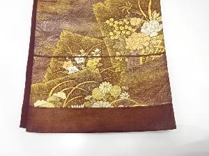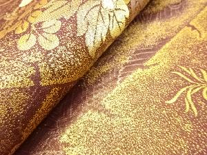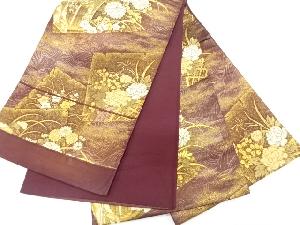 アンティーク 破れ色紙に御所車・草花模様織り出し袋帯(材料)