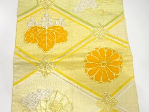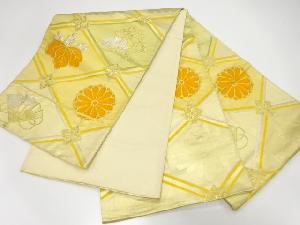 アンティーク 斜め格子に桐・菊模様織り出し袋帯(材料)