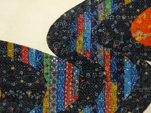 アンティーク 切りばめ 流水に縞・花更紗模様袋帯(材料)