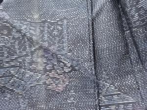 洗練された落ち着きのある色合いで、生地そのものは柔らかく、しわになりにくいと言われている。大島紬の特徴とも言える、織締めと呼ばれる技法で藍を用いて染められた糸を使用している。