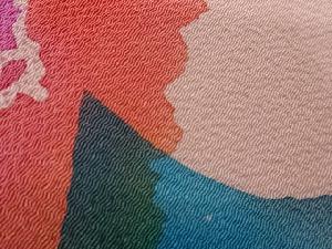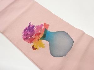 作家物 縮緬地抽象花瓶に花模様名古屋帯