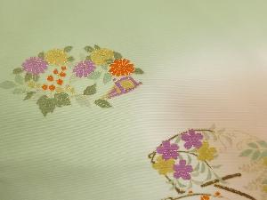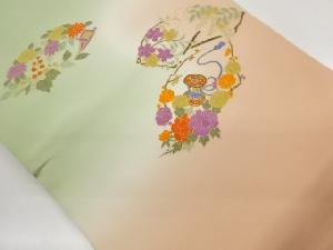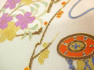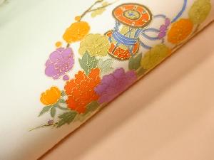 作家物 塩瀬金彩鼓に笛・花々模様名古屋帯