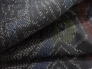 洗練された落ち着きのある色合いで、生地そのものは柔らかく、しわになりにくいと言われている。大島紬の特徴とも言える、織締めと呼ばれる技法で藍を用いて染められた糸を使用している。