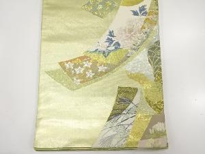 アンティーク 短冊に牡丹・秋草・満月模様織り出し袋帯(材料)