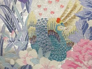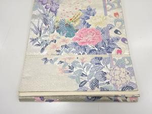 アンティーク 孔雀に蝶・四季花模様織出し袋帯(材料)
