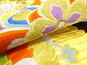 アンティーク 向かい鶴に華紋・若松模様織出し袋帯(着用可)