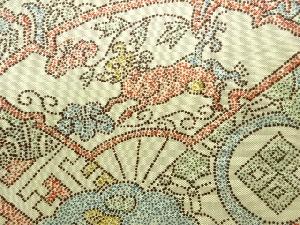 扇に花・鳥模様本場大島紬着物(染)