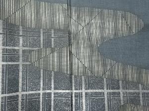 洗練された落ち着きのある色合いで、生地そのものは柔らかく、しわになりにくいと言われている。大島紬の特徴とも言える、織締めと呼ばれる技法で藍を用いて染められた糸を使用している。
