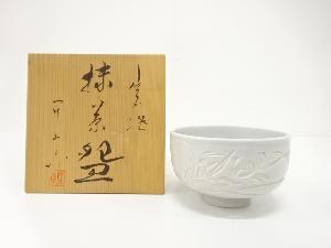 出石焼 小島昇山造 白磁 花彫 茶碗