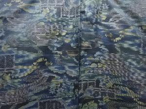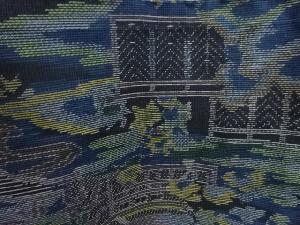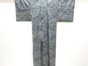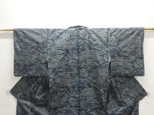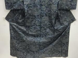 流水に家屋風景模様織出し本場泥大島紬着物