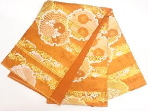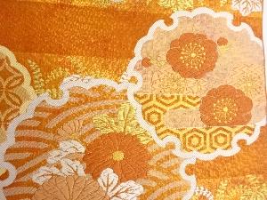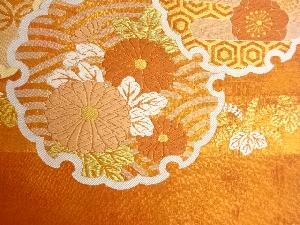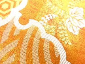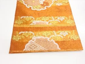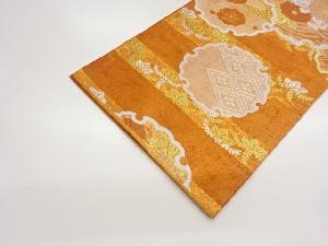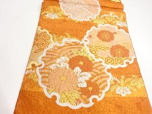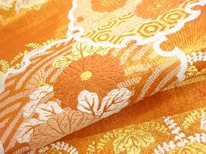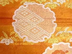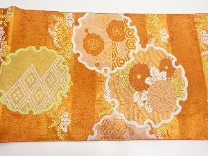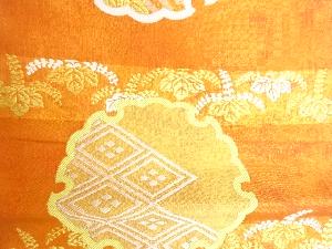川島織物製 引箔横段に雪輪・梅・菊模様織出し丸帯