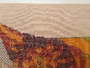 洗練された落ち着きのある色合いで、生地そのものは柔らかく、しわになりにくいと言われている。大島紬の特徴とも言える、織締めと呼ばれる技法で藍を用いて染められた糸を使用している。