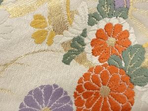 未使用品 片輪車に菊・紅葉・蝶模様織出し名古屋帯