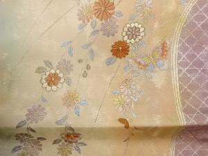引箔金彩蝶に菊・籠目模様刺繍名古屋帯