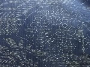 アンティーク 地紙に花模様織出し本場泥大島紬着物