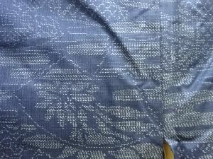 洗練された落ち着きのある色合いで、生地そのものは柔らかく、しわになりにくいと言われている。大島紬の特徴とも言える、織締めと呼ばれる技法で藍を用いて染められた糸を使用している。