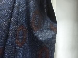 洗練された落ち着きのある色合いで、生地そのものは柔らかく、しわになりにくいと言われている。大島紬の特徴とも言える、織締めと呼ばれる技法で藍を用いて染められた糸を使用している。