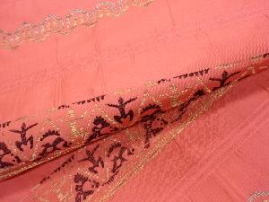 横段に抽象人物・幾何学模様織出し名古屋帯
