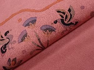 縮緬地変わり横段に抽象花鳥模様名古屋帯