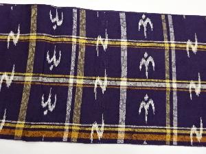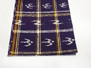 手織り紬格子に燕絣模様織出し名古屋帯