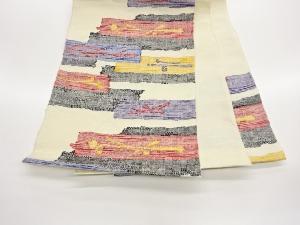 手織り真綿紬変わり横段模様織出し名古屋帯