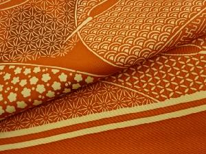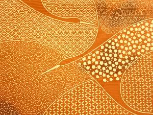 塩瀬型染抽象鶴に古典柄・梅模様名古屋帯