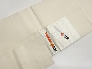 作家物 格子に姉さん人形模様織出し名古屋帯