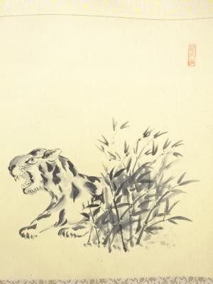 前大徳 法谷文雅筆 「虎の図」 画賛 肉筆紙本掛軸