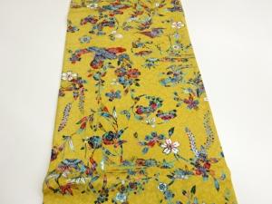 鶴に笹・草花模様開き名古屋帯(額縁仕立て)