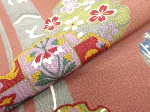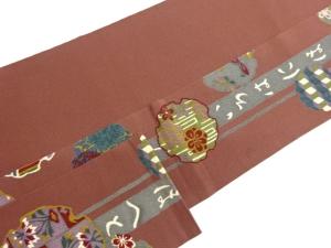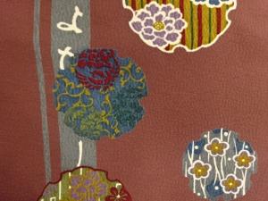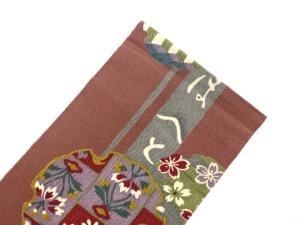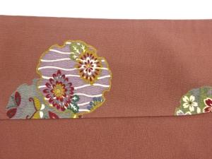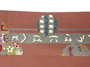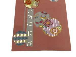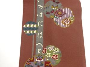 縮緬地雪輪に花々・蝶・いろは文字模様名古屋帯