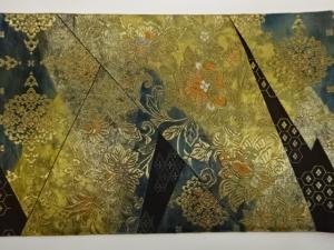 服部織物製 こはく錦手工芸引箔切り嵌め風華紋に草花・古典柄模様織出し袋帯