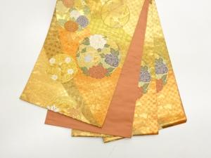 高島織物製 曲線に花輪・草花・古典柄模様織出し袋帯