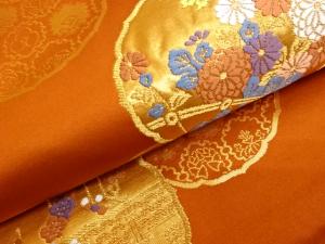 雪輪文に花模様織出し名古屋帯