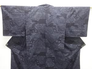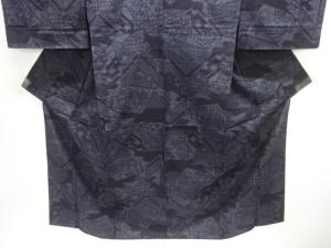 未使用品 仕立て上がり 重要無形文化財 本場結城紬100亀甲 花古典柄織り出し単衣着物