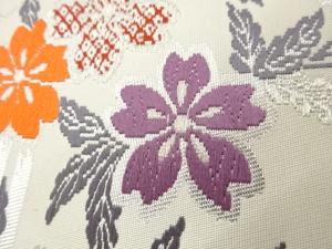 変わり格子に枝垂れ桜模様織出し名古屋帯