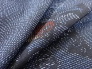 洗練された落ち着きのある色合いで、生地そのものは柔らかく、しわになりにくいと言われている。大島紬の特徴とも言える、織締めと呼ばれる技法で藍を用いて染められた糸を使用している。