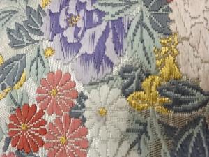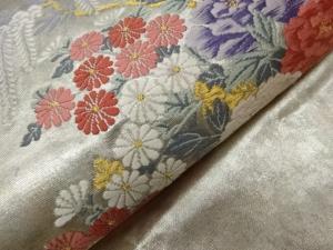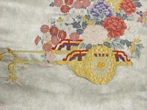 高島織物製 青銅箔花車模様織出し名古屋帯