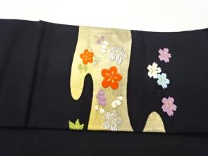 霞に菊梅・桜模様織出し名古屋帯