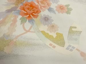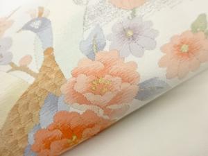 綴れ孔雀に牡丹・菊・桜模様織出し名古屋帯