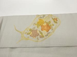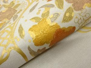 金通し手描き金彩花葉模様名古屋帯