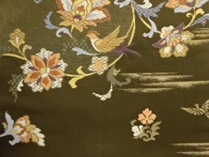 引箔花々に鳥模様織出し名古屋帯