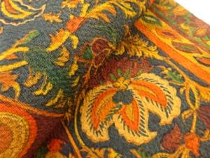 未使用品 縮緬地 縞に花鳥模様 名古屋帯