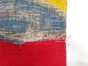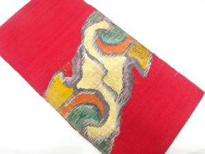 未使用品 手織り真綿紬 唐草模様織り出し 名古屋帯