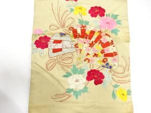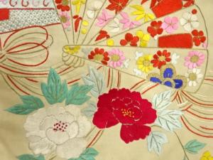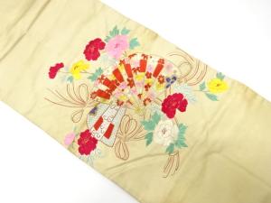 アンティーク 桧扇に牡丹模様刺繍名古屋帯