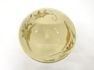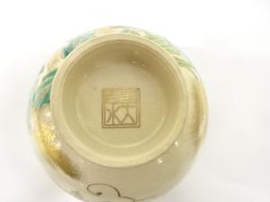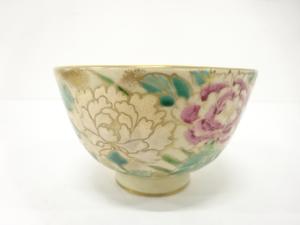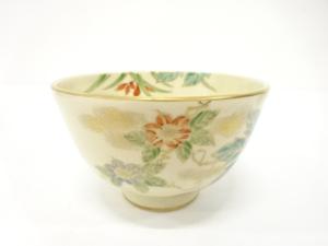 京焼 美泉造 仁清写 金彩色絵 草花 茶碗