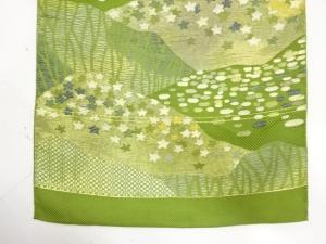 アンティーク 山並に草花模様織り出し 名古屋帯地反物