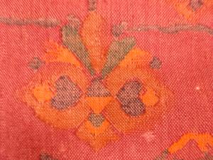 アンティーク 手織り真綿紬 華紋に花更紗模様織り出し 名古屋帯地反物